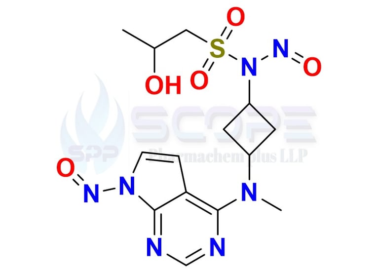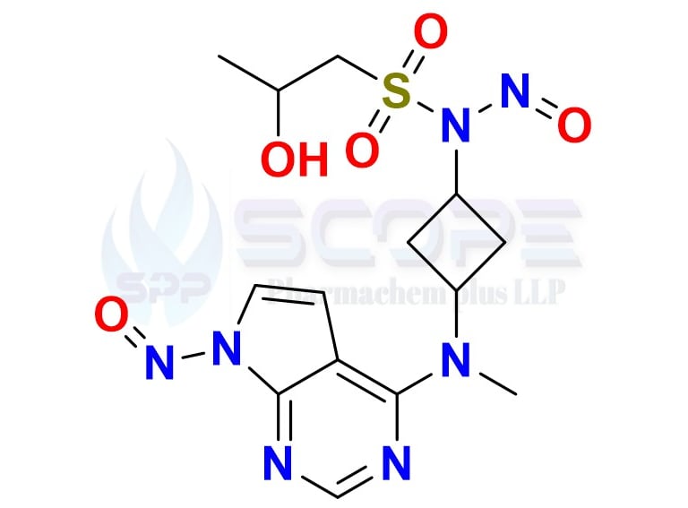 2-hydroxy-N-(3-(methyl(7-nitroso-7H-pyrrolo[2,3-d]pyrimidin-4-yl)amino)cyclobutyl)-N-nitrosopropane-1-sulfonamide.